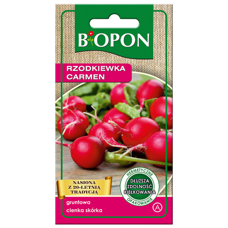BIOPON Rzodkiewka Carmen 5 g to sprawdzona odmiana do uprawy w ogrodzie, na działce i w większych pojemnikach.