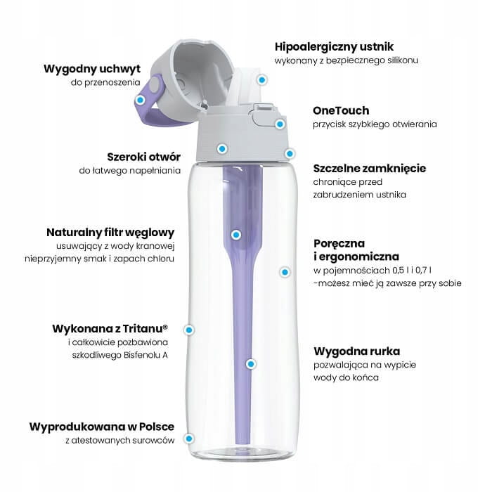 Bidon Dafi Solid 0,7L lawenda z filtrem – Tritan, filtr węglowy