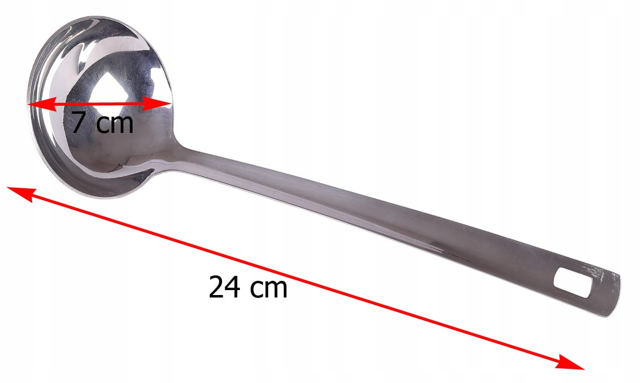 Chochla stalowa nierdzewna 24 cm – łyżka wazowa srebrna 7 cm