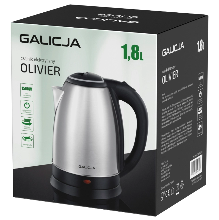 Czajnik elektryczny Olivier 1,8L stalowy Galicja – szybkie i bezpieczne gotowanie