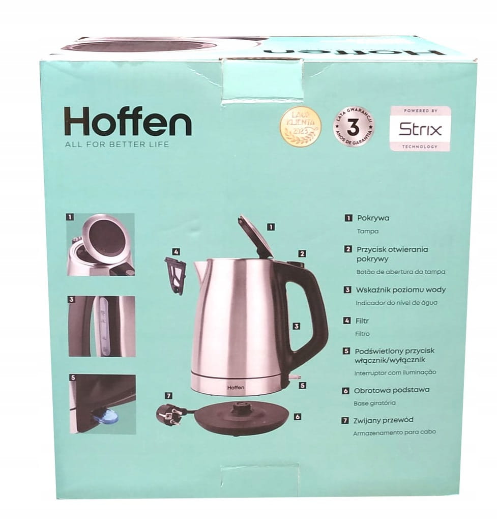 Bezprzewodowy czajnik elektryczny Hoffen o mocy 1850 - 2200 W i pojemności 1,7 l, to urządzenie o wyjątkowym designie i wysokiej jakości użytych materiałów. Stanie się ozdobą każdej kuchni czy biura, a dzięki swoim funkcjonalnym rozwiązaniom uprości życie.