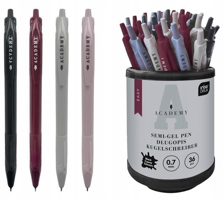 Długopis EASY ACADEMY od INTERDRUK to niezawodny przyjaciel każdego ucznia, pracownika biurowego czy domowego organizatora. Dzięki automatycznemu mechanizmowi szybko rozpoczniesz pisanie, bez konieczności zdejmowania skuwki, co sprawia, że długopis jest niezwykle praktyczny i wygodny w użytkowaniu.