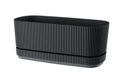 Doniczka owalna PERA 29 cm z podstawką w kolorze antracytowym to stylowe i funkcjonalne rozwiązanie do wnętrz, na balkon i taras. Matowe wykończenie, nowoczesny design i trwałe tworzywo zapewniają estetyczną ekspozycję roślin oraz wygodę użytkowania.