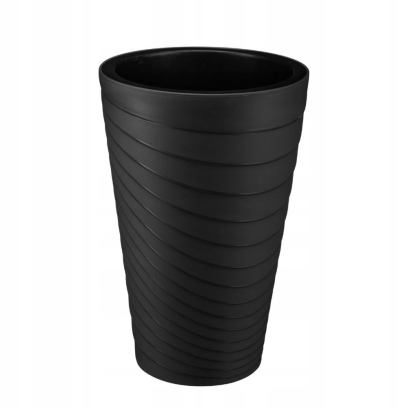 Doniczka okrągła TWISTA czarna 35x59 cm z wkładem została zaprojektowana z myślą o estetycznym wyeksponowaniu większych roślin w przestrzeni domowej oraz na zewnątrz. Smukła, wysoka forma w połączeniu z głębokim czarnym kolorem nadaje aranżacji nowoczesnego i eleganckiego charakteru.