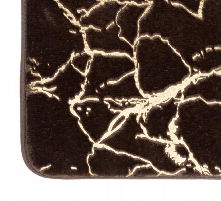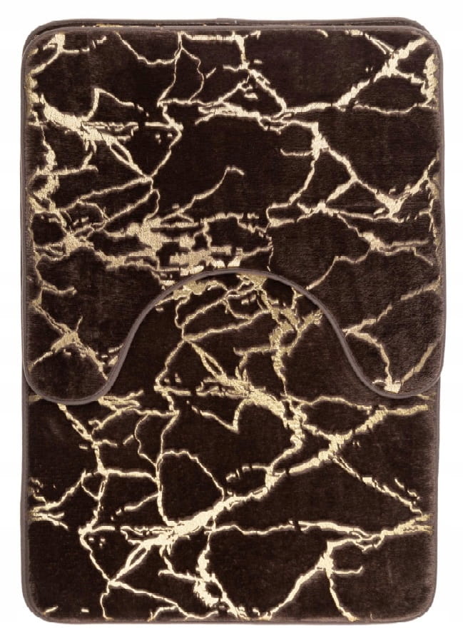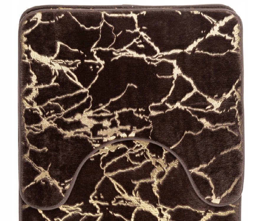 Komplet dywaników łazienkowych Marlene w kolorze brązowym ze złotymi zdobieniami to elegancki zestaw 2 sztuk. Miękki polarowy materiał zapewnia komfort, a antypoślizgowy spód zwiększa bezpieczeństwo na wilgotnej podłodze.