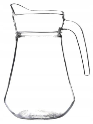 Wykonany z wysokiej jakości grubego szkła, dzbanek charakteryzuje się klasycznym, lekko pękatym kształtem oraz pojemnością 1,5L. Wyposażony w wygodną rączkę i szeroki lejek, zapewnia łatwe nalewanie i serwowanie napojów.