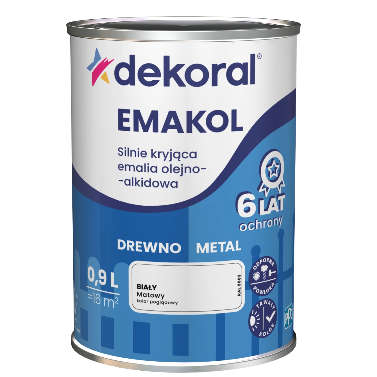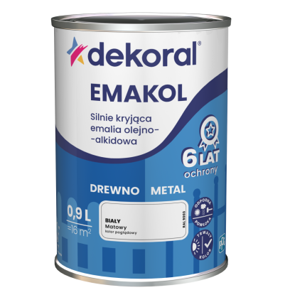Emalia olejno-alkidowa matowa 0,9 L to uniwersalna farba przeznaczona do malowania powierzchni drewnianych oraz metalowych. Tworzy trwałą, odporną powłokę o matowym wykończeniu, które nadaje powierzchniom nowoczesny i estetyczny wygląd bez efektu połysku.
