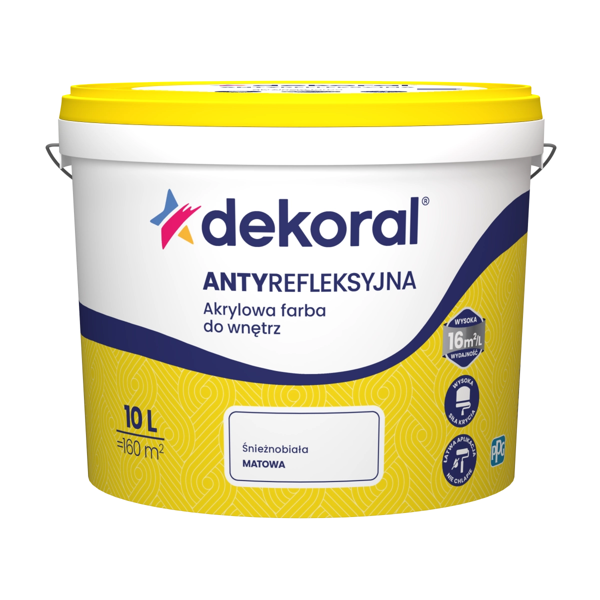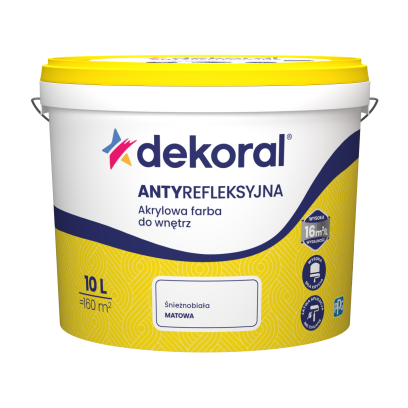 Farba akrylowa antyrefleksyjna biała 10L to wysokiej jakości emulsja przeznaczona do malowania ścian i sufitów wewnątrz pomieszczeń. Dzięki specjalnej powłoce antyrefleksyjnej skutecznie maskuje niedoskonałości podłoża i zapewnia jednolite, śnieżnobiałe wykończenie nawet na dużych powierzchniach.