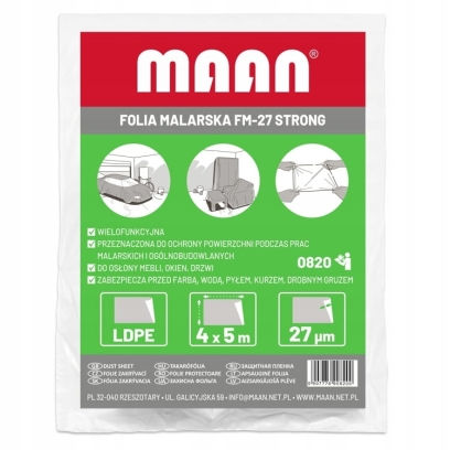 Folia malarska wykonana z polietylenu HDPE o grubości 27 µ to solidne i trwałe zabezpieczenie powierzchni podczas prac remontowych. Dzięki zwiększonej grubości produkt jest wyjątkowo odporny na przetarcia, rozerwania oraz inne uszkodzenia mechaniczne, co czyni go odpowiednim także do bardziej wymagających zastosowań.