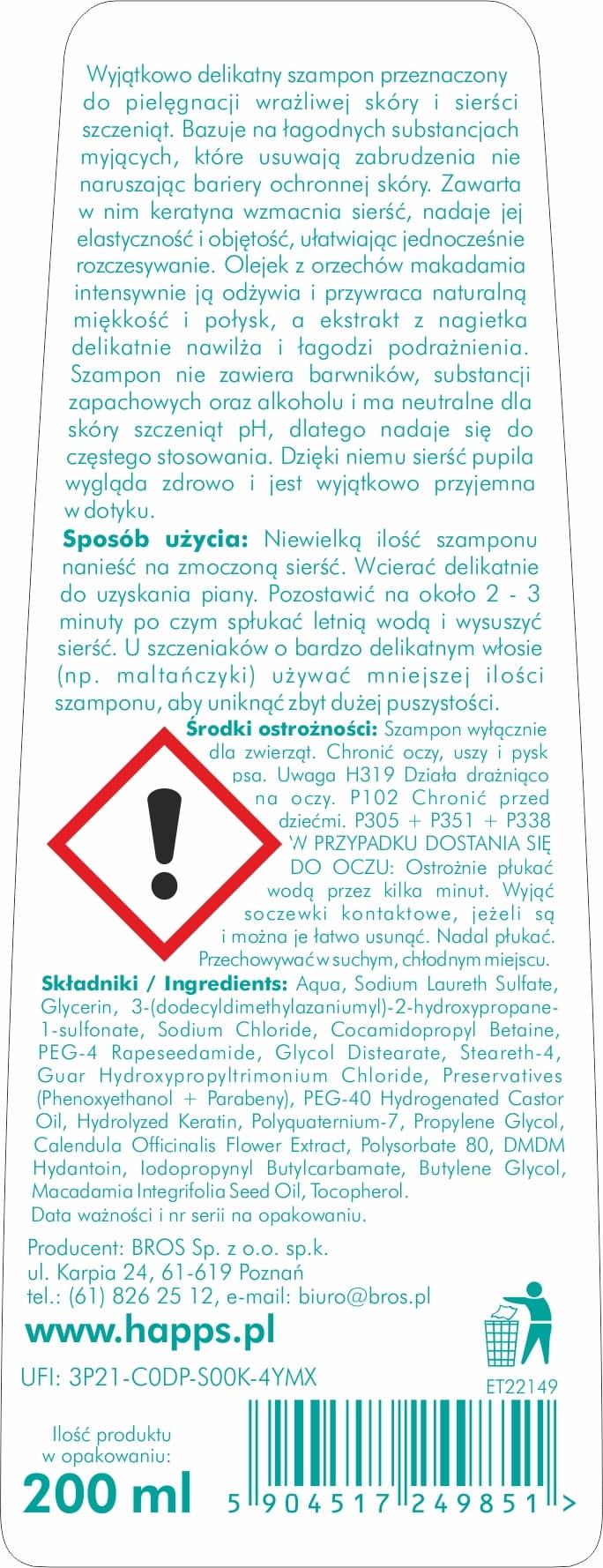 Happs szampon dla szczeniąt delikatny pielęgnacyjny 200 ml