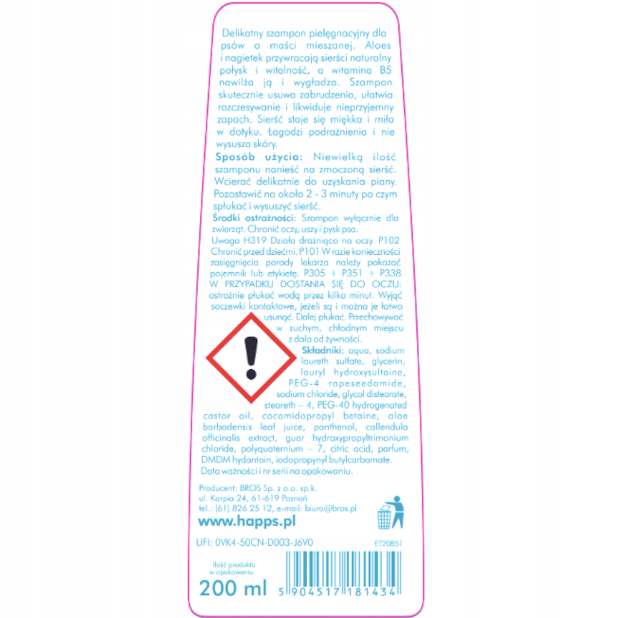 Happs szampon pielęgnacyjny dla psów o sierści mieszanej 200 ml to delikatny szampon pielęgnacyjny dla psów o sierści mieszanej, który pomaga utrzymać sierść i skórę psa w czystości oraz dobrej kondycji.