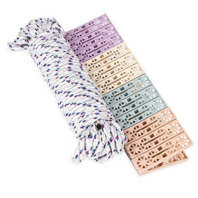 ZESTAW DO WIESZANIA PRANIA – SZNUR PLECIONY I KLAMERKI