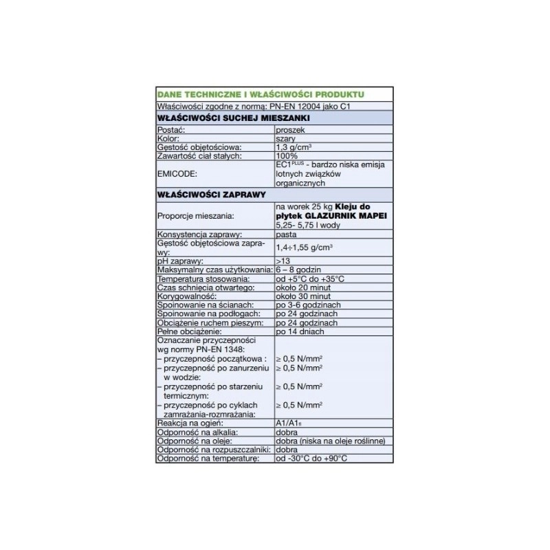 Klej do płytek MAPEI Glazurnik 25 kg to wysokiej jakości zaprawa klejowa przeznaczona do montażu płytek ceramicznych na różnych powierzchniach. Produkt sprawdzi się zarówno wewnątrz, jak i na zewnątrz budynków, pod warunkiem, że podłoże jest stabilne, nośne i chłonne.