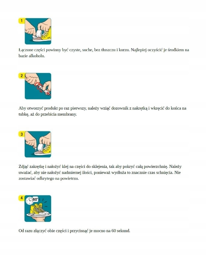 natychmiast połączyć elementy i docisnąć przez ok. 60 sekund