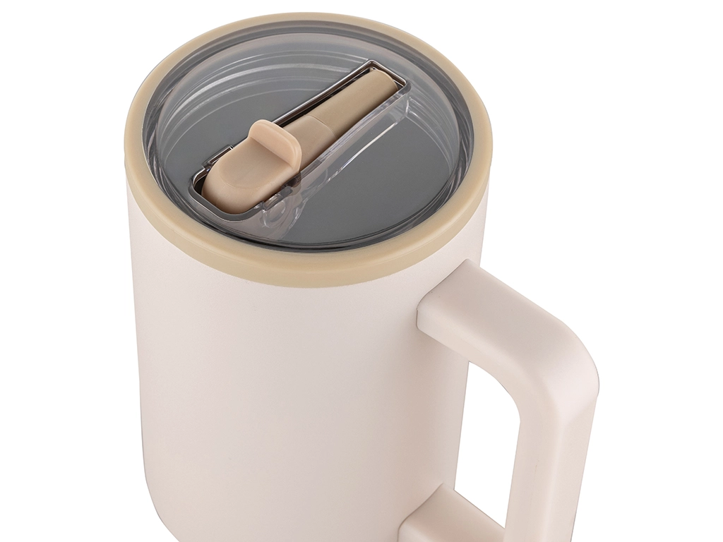 Minimalistyczny, beżowy design sprawia, że kubek świetnie prezentuje się w każdej sytuacji – zarówno w biurze, jak i podczas podróży.