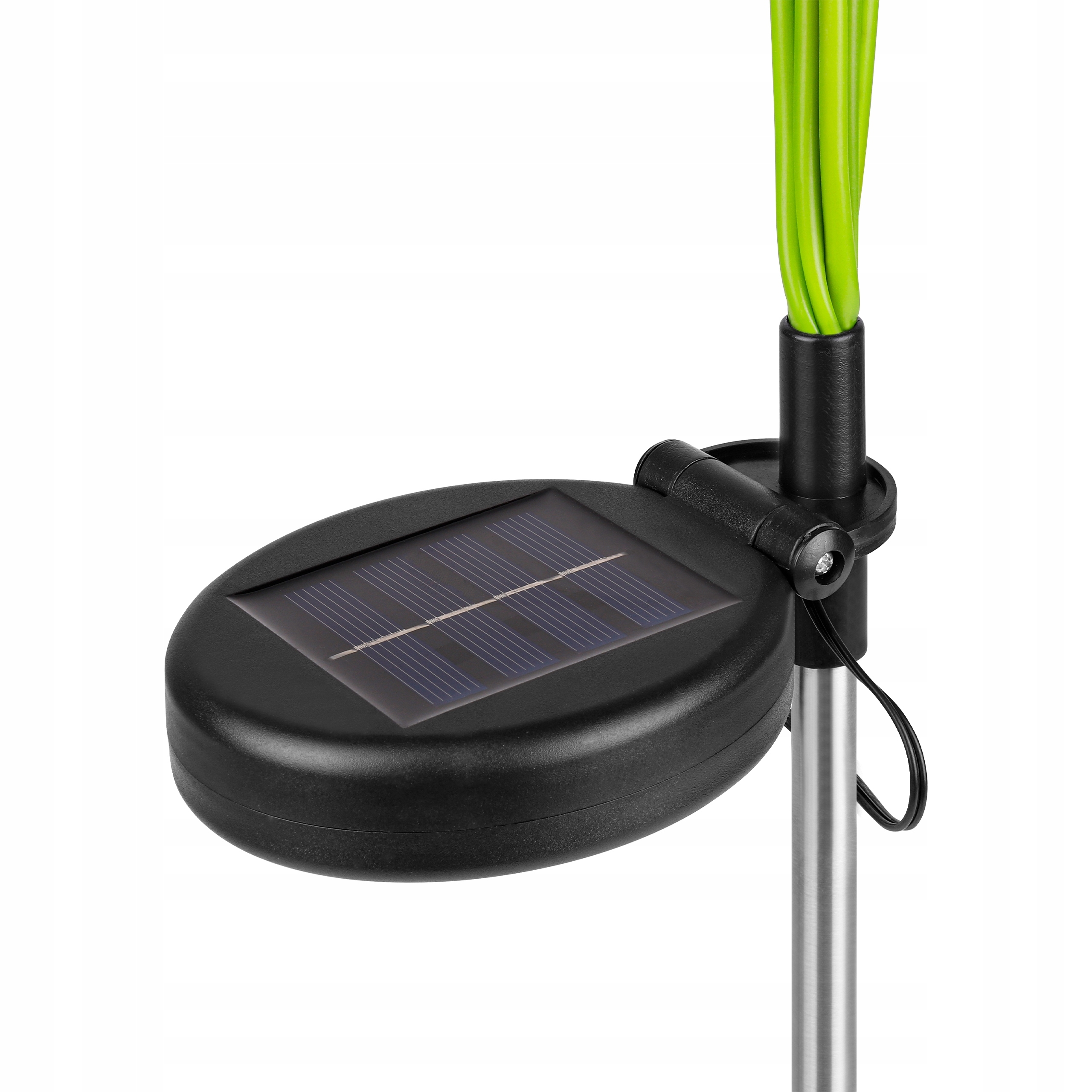 Panel solarny ładuje akumulator w ciągu dnia, a po zmroku lampka automatycznie włącza się dzięki czujnikowi zmierzchu.