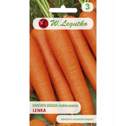 Marchew jadalna Lenka (Daucus carota) to średnio wczesna, bardzo plenna odmiana przeznaczona głównie na zbiór jesienny i zimowy. Tworzy równe, gładkie, smukłe korzenie o walcowatym kształcie, które wyróżniają się wysoką jakością handlową oraz doskonałym smakiem.