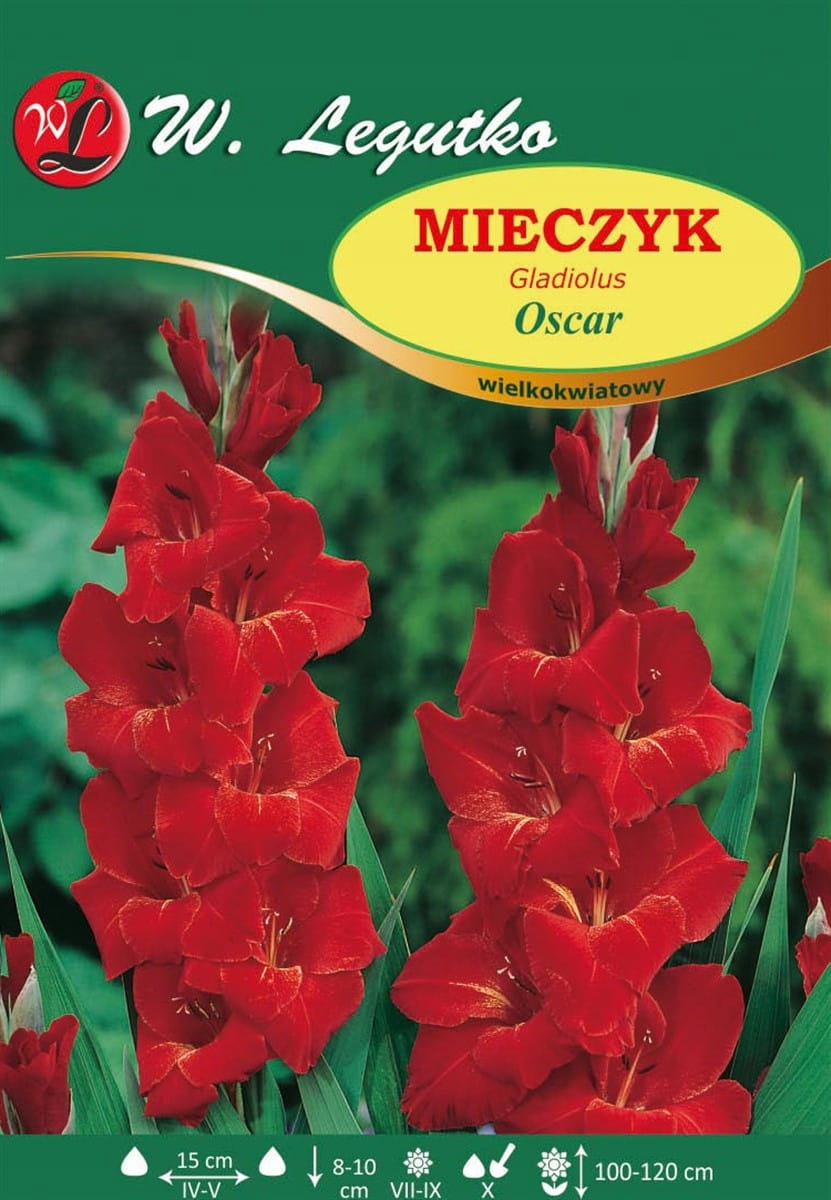Mieczyk Oscar to klasyczna odmiana wielkokwiatowa o intensywnie czerwonych, efektownych kwiatach. Idealny na rabaty i do bukietów.