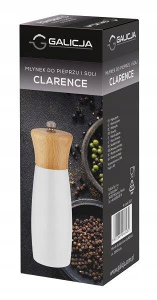 Ręczny okrągły młynek Galicja Clarence jednokomorowy. Wykonany z wysokiej jakości drewna bukowego oraz tworzywa sztucznego. Doskonały do przyprawiania potraw świeżo mieloną solą bądź pieprzem. To stylowy i elegancki dodatek w każdej kuchni, wykonany w ponadczasowym, białym i czarnym kolorze. Młynek posiada regulację grubości mielenia ziaren. Ceramiczne żarna stanowią serce urządzenia, są odporne na korozje, dzięki czemu posłużą na długo.