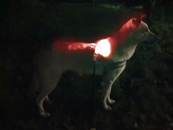 - zwiększy widoczność psa kota dla pieszych, kierowców i rowerzystów. W ciemności trudno zauważyć biegnącego zwierzaka. Świecąca nakładka to idealny element ostrzegający.
