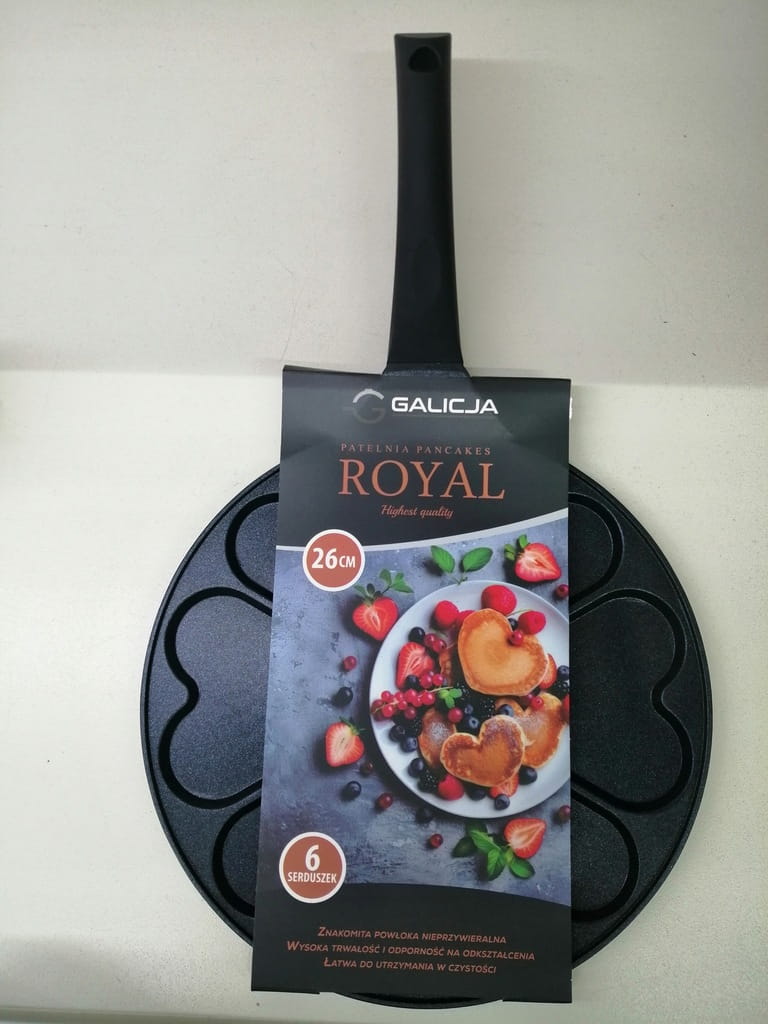 Patelnia do placków Galicja Royal 26 cm z nieprzywierającą powłoką to idealny wybór do smażenia naleśników i placuszków. Pasuje na wszystkie kuchenki, w tym indukcję.