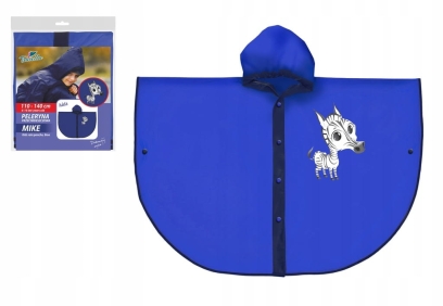 Niebieska peleryna przeciwdeszczowa RAVI MIKE dla dzieci 110–140 cm – lekka, wodoodporna i wygodna.