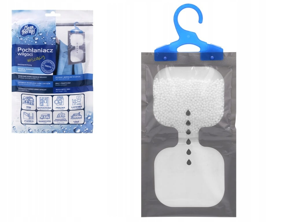 Bezzapachowy pochłaniacz wilgoci do szafy RAVI 100 g – wiszący osuszacz powietrza