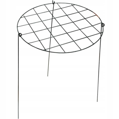 Wytrzymała podpora ogrodowa model PP14+ to niezawodne wsparcie dla wysokich roślin ozdobnych. Wykonana z grubego, stalowego drutu o grubości 4 mm i lakierowana proszkowo na kolor ciemnozielony. Jej konstrukcja umożliwia swobodny wzrost roślin przez kratę, która jednocześnie stabilizuje pędy i chroni je przed złamaniem.