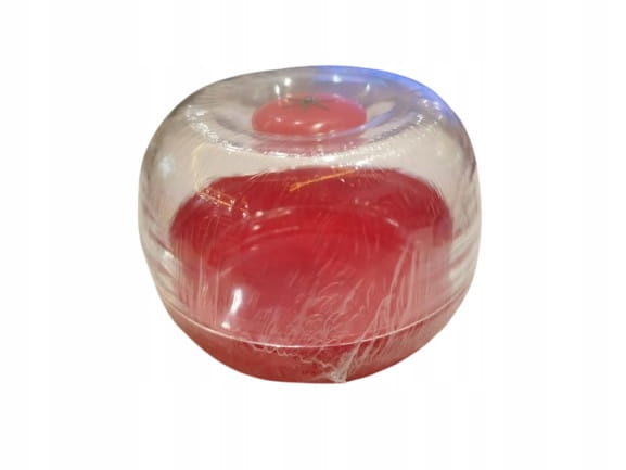 Plastikowy pojemnik na pomidora chroni przed zgniataniem i zapachami. Idealny do lodówki i transportu, dopasowany do całych i przekrojonych owoców.