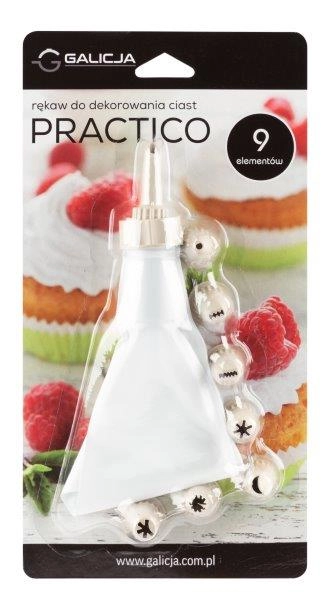 Rękaw do dekorowania ciast i ciasteczek PRACTICO z zestawem 8 końcówek to praktyczne narzędzie, które pozwala w prosty sposób tworzyć piękne dekoracje na wypiekach. Dzięki różnorodnym tylkom możesz uzyskać zarówno delikatne wzory, jak i bardziej efektowne zdobienia.