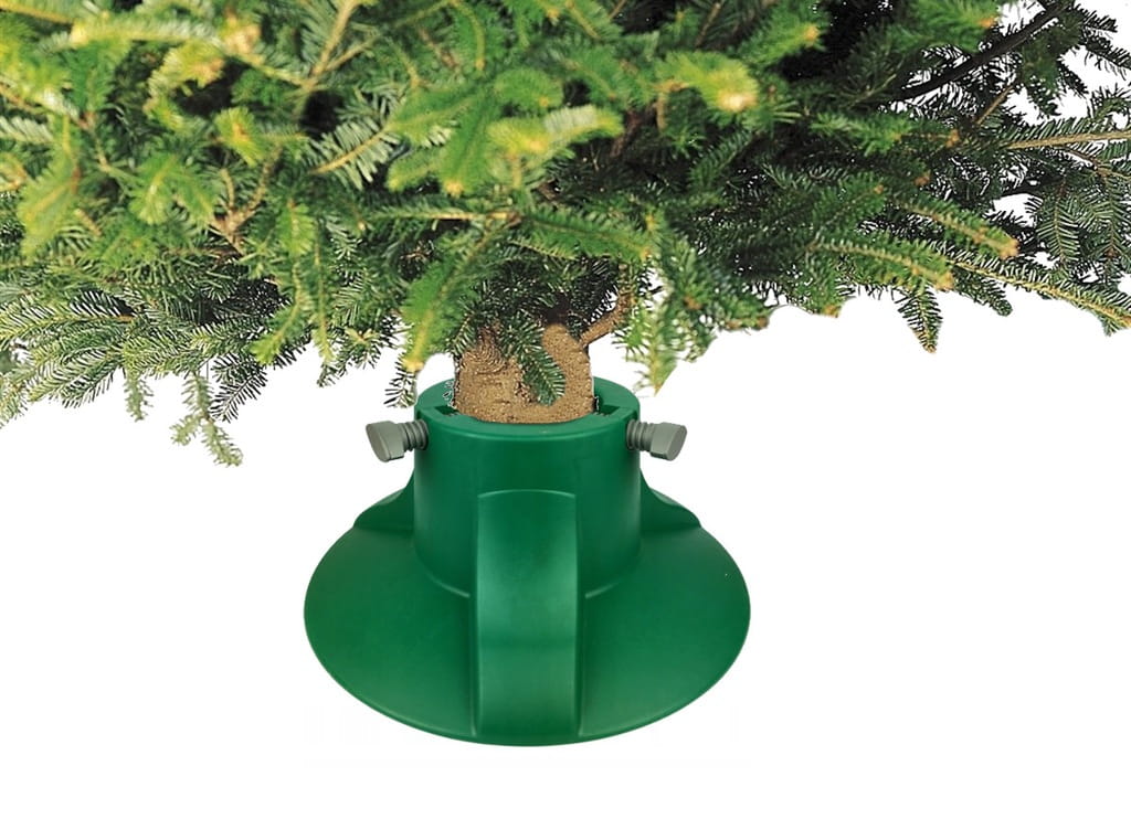 Wykonany z trwałego tworzywa sztucznego, stojak jest odporny na wilgoć i uszkodzenia mechaniczne. Dzięki trzem śrubom mocującym możliwe jest szybkie i precyzyjne ustabilizowanie pnia, co gwarantuje pionowe ustawienie drzewka.