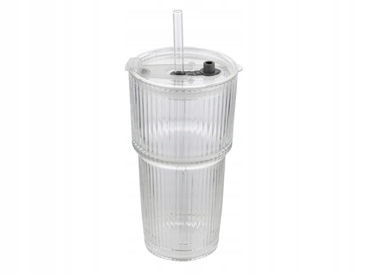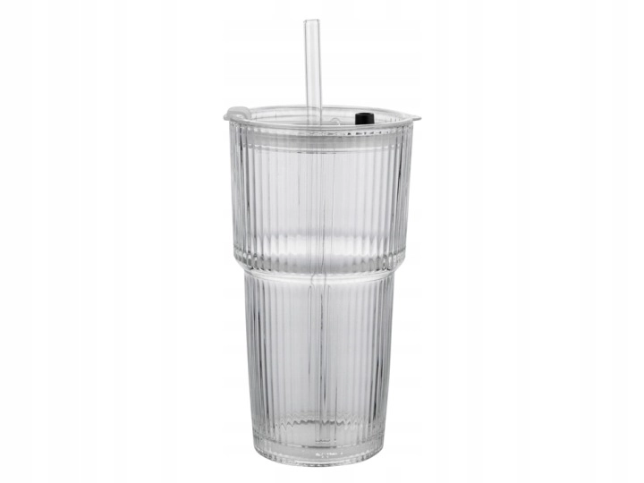 Szklanka Florina Vetrino 540 ml – ryflowana z pokrywką i słomką