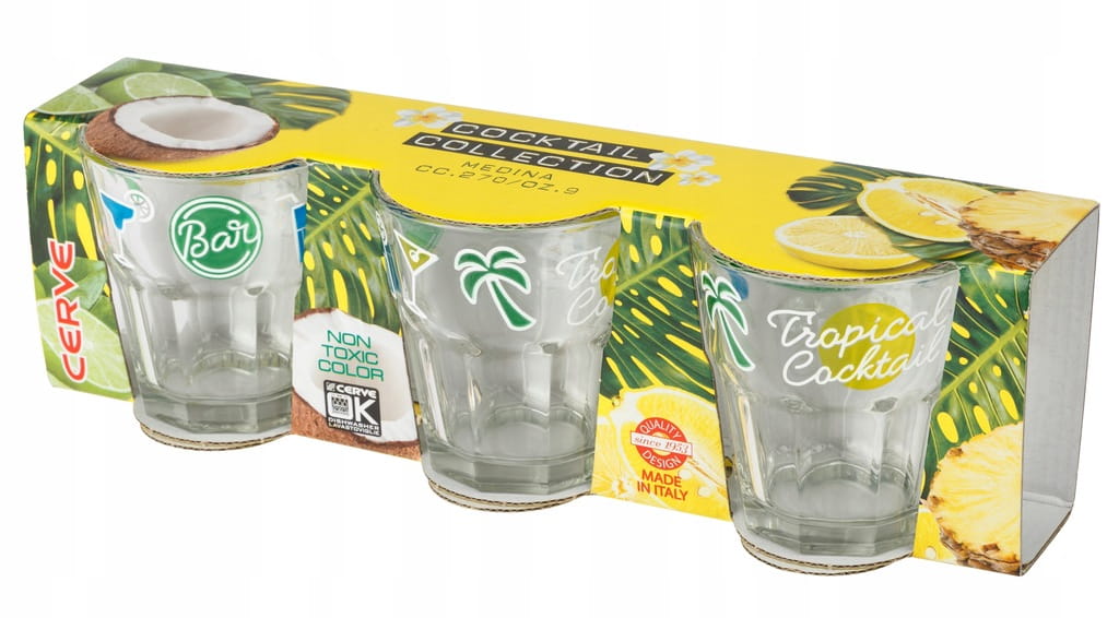 Zestaw zawiera 3szt szklanek niskich TROPIC doskonałych na sok lub do drinków i chłodnych napojów.
