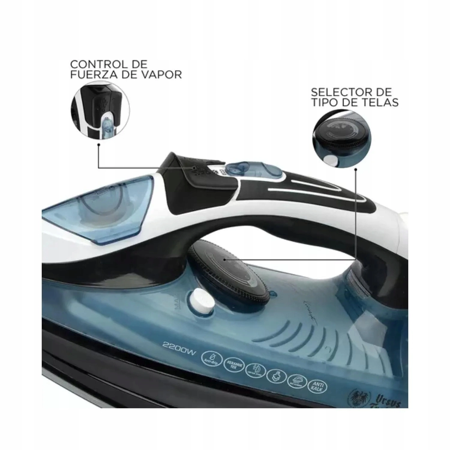 Urządzenie posiada moc 2200W, co zapewnia szybkie nagrzewanie i skuteczne prasowanie.