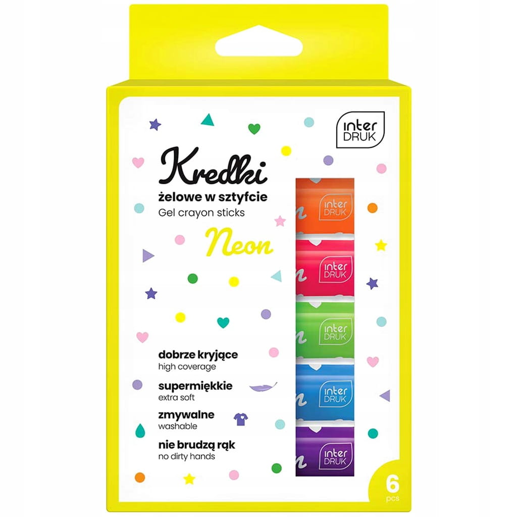 Żelowe kredki w sztyfcie Interdruk – 6 intensywnych neonowych kolorów