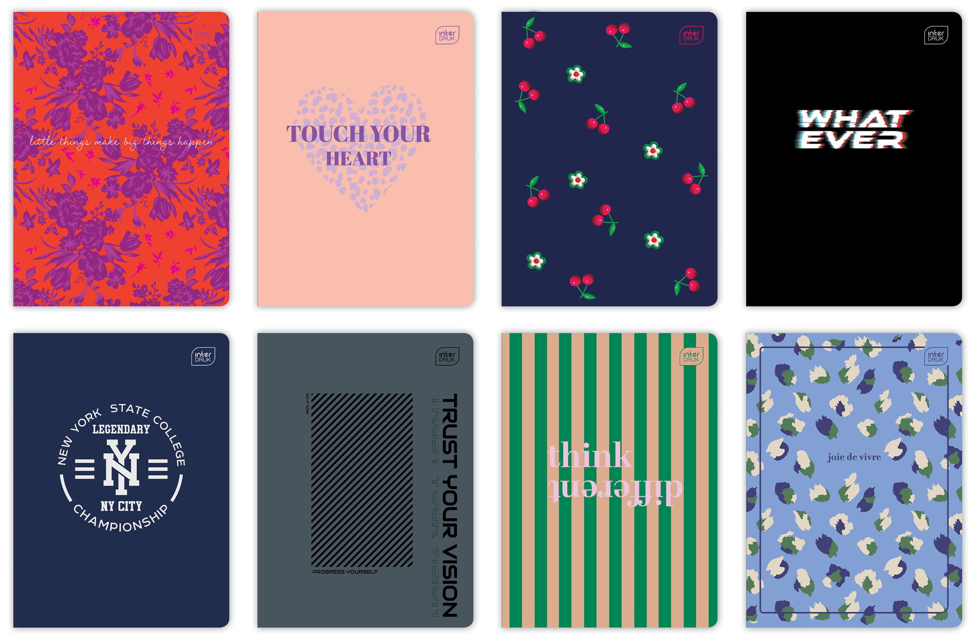 Okładka jest matowa, z miejscowym lakierem UV, który nadaje elegancki, lekko błyszczący efekt i jednocześnie zwiększa odporność na codzienne użytkowanie. Miękka oprawa zapewnia wygodę podczas pisania i sprawia, że zeszyt jest lekki oraz poręczny.